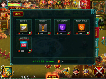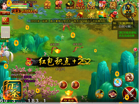 《征途》手游贺岁版中,抢红包玩法系统全面升级,《征途》手游中将加入积分概念,玩家每成功抢得一次红包,就会获得一定数量的积分奖励。而红包积分商城中的各路超神装备就全靠抢红包中累计的积分来兑换了!
