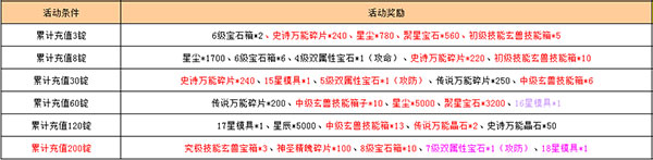 活动期间、累计充值达到指定金额、即可额外获得以下奖励: