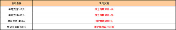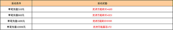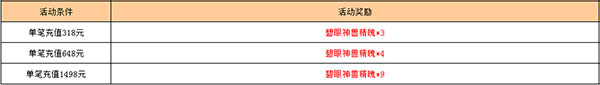 活动期间、单笔充值达到指定金额、即可获得超值好礼(请在活动下架前及时领取活动)