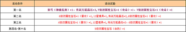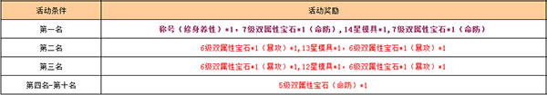 排行榜根据排名获得奖励,活动结束排行榜积分前十名获得丰厚奖励:
