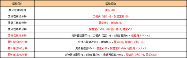 活动期间满足一定的在线时间即可领取好礼