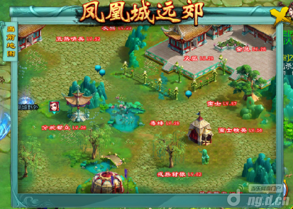 凤凰城远郊——在28级左右我们会接触到的新地图。此地图用来练级的主要怪物等级分布为26级到29级。由于使用的还是之前15级左右的装备,这时我们掉血会有点快。练级期间如果红药和蓝药出现断层,则可以直接在商城的常用页花费游戏币进行购买。