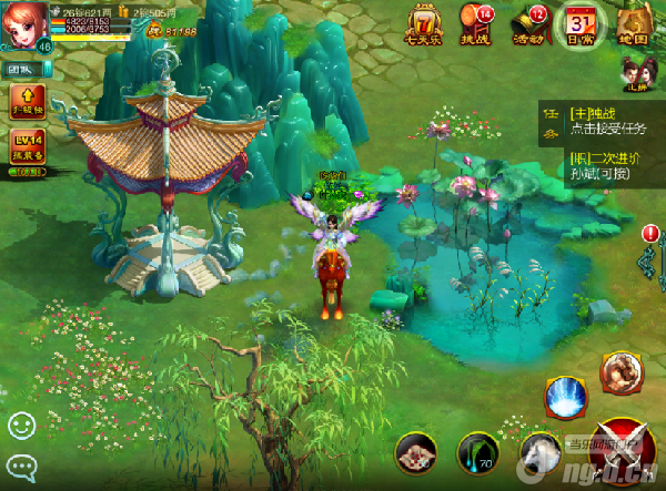 选择好角色后,大家就会出生在清源村。清源村作为各位侠士的出生地,一直有着较高的人气。作为新人,在清源村中完成NPC交给您的主线任务,不失为一条快速成长的好方法。轻松的自动寻路及一键任务方式,让您不但能熟悉各种游戏操作,更让您在游戏初期能够积累一定的启动资金、药品和装备,并为日后的江湖闯荡做好准备。