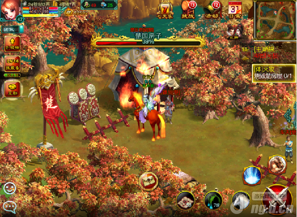 贴心提示:火攻任务在战争地图上进行,游戏初期由于有新手保护,大家可以放心的进行。但是随着等级的提升,之后进行此类任务时,大家要记得组队前往,毕竟人多力量大。否则在路上不但会受到敌国士兵的攻击,更会有敌国玩家不断出现阻扰你完成任务。