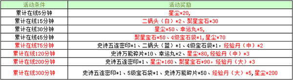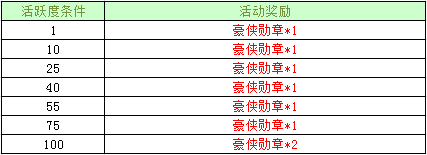 活动期间、达到一定活跃值活跃宝箱可额外获得: