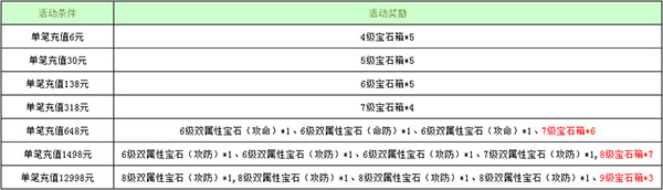 宝石疯狂送!充值指定金额,就可享受宝石好礼啦~