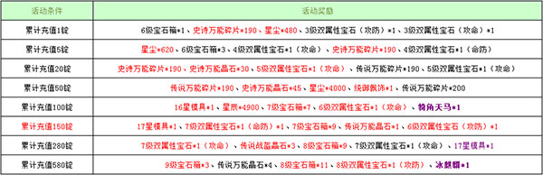 活动期间、累计充值达到指定金额、即可额外获得以下奖励: