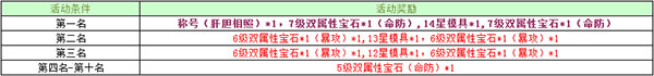 排行榜根据排名获得奖励,活动结束排行榜积分前十名获得丰厚奖励: