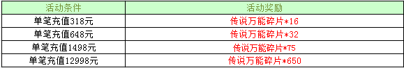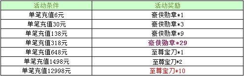 活动期间、单笔充值达到指定金额、即可获得超值好礼(请在活动下架前及时领取活动)