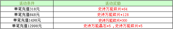 活动期间、单笔充值达到指定金额、即可获得超值好礼(请在活动下架前及时领取):