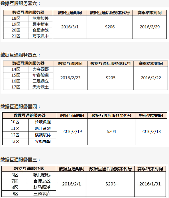 感谢各位主公对《率土之滨》的支持,我们将在对应时间对以下服务器进行数据互通。