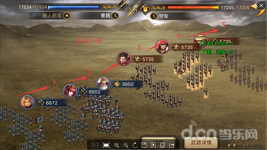 其次打上危崖困军,可以秒对面2个 法伤输出,为什么给他打呢,因为危崖坤军只适合给前锋打,而前锋只有他和五星曹操这种谋略性的肉是最适合这个技能的