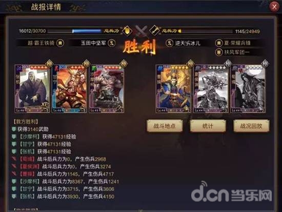 当然任何队伍都有天敌,前锋带空城我就没辙了,遇到肉步我也打不动,但是打其他控制性队伍,尤其是中军不是很硬的队伍,特别是骑兵,胜率还是很高的。附上战报!