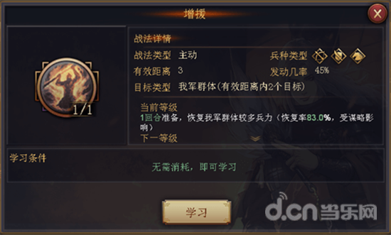 只要战法有足够的学习数即可学习,无需消耗任何东西