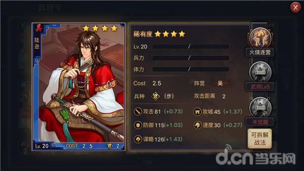 陆逊算是出场率非常高的吴国四星武将了,一般用于都督队,是也四大都督里唯一一个步兵(以后肯定会出五星弓兵版本),谋略将,主技能火烧连营是多重伤害的策略输出技。