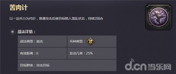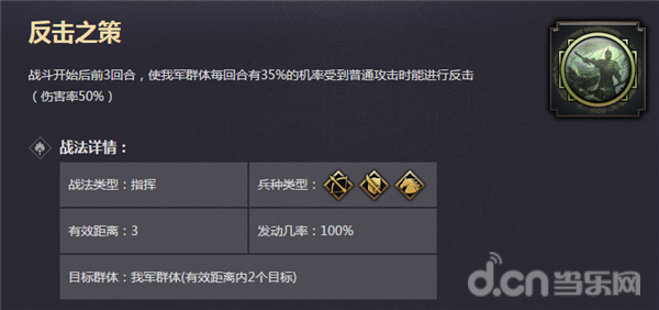 前锋·技能搭配建议:坚守兵法 /铁壁 / 规避 + 危涯困军 / 疑兵 / 反计 /陷阱(或者其他三星策略输出战法)
