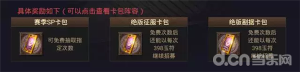 *绝版征服卡包和绝版割据卡包可招募绝版武将,创建新赛季角色后持续存在24小时,免费次数用完后可使用玉符继续招募