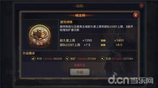 一般资源建造了设施就没有资源征兵了,那该怎么办呢?高玩建议:先扩大城主府至lv7,因为lv7可以建造兵营,建造兵营后可以征更多的兵,然后去占领高级领地(lv5、lv6)。意思就是先囤资源,不要浪费在一些没有奖励资源的建造上。也不要浪费兵力去攻打难以攻下的领地,前期可以扫荡较弱领地去提升武将级别,用兵力压制去占领领地不容易造成兵力亏损。武将可以选择具有恢复兵力技能的,减少兵损就是省下资源!高玩们都是靠这些细节慢慢积攒兵力,然后占领高级地,一下子就拉开差距了。
