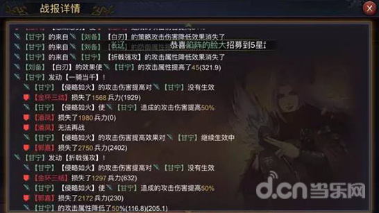 在做攻略时,喜闻策划大大加强甘宁,看到预告瞬间惊起:被动战法,每回合优先行动,攻击类主动战法发动率提高20%,进行攻击时有30%几率使本次伤害提高50%(满级效果)。不得不说,这一改动可加强不少,废话不多说,直接上阵容。