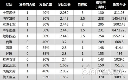接下来,只需要对照表格,把战法的期望发动次数×目标×伤害率即可得出该战法的期望输出。