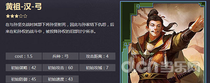 黄祖因为cost还是比较小,所以也是不能够当做主要的武将来使用。但是黄祖也还是能当做是开荒队伍来使用的。不过,黄祖在技能上面实用性还是比较大的,也是可以当做是二线开荒队伍来使用。如果要是阵容的话,因为黄祖的技能不怎么受属性的限制,因此,我们就从属性上面来安排黄祖所在的位置就好了。黄祖属性最强的是攻击,那么我们就可以考虑把黄祖放在前锋上面,因为黄祖的防御也不低,正好可以放前锋位置。后面随着我们的等级提升,可以安排的队伍越来越多。像黄祖这样的三星武将就可以放在后面了。总的来说,刚开始抽到黄祖,可以用来开荒,等我们抽到高级武将之后黄祖就退居二线。