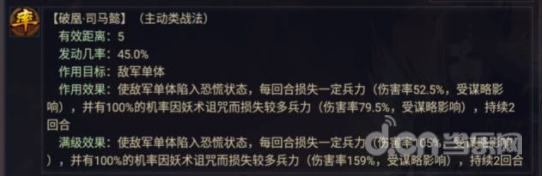 基于以上,司马懿改版不仅是改动了技能的输出方式,也改动了伤害性质,之前的司马懿技能效果为恐慌以及妖术诅咒。这就使得他和一些战法和武将搭配容易产生冲突(战法冲突如【楚歌四起】,伤害性质为恐慌伤害;武将搭配冲突如张姬,其技能效果为动摇加恐慌)。