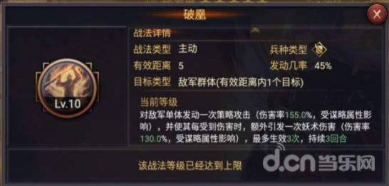 对敌军单体发动一次策略攻击(这里是纯伤害 ,不是状态伤害),然后这个敌军在接下来的三回合内每受到伤害都会额外引发一次妖术(状态伤害)伤害,这个伤害最多生效3次。