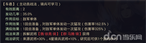车悬(四星单体伤害最高的技能,由于攻击距离的问题只能放在中军之前,放在大营打不到人)