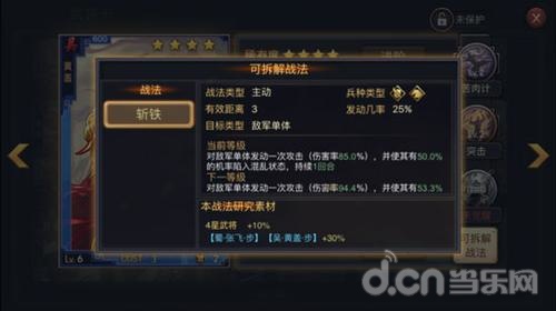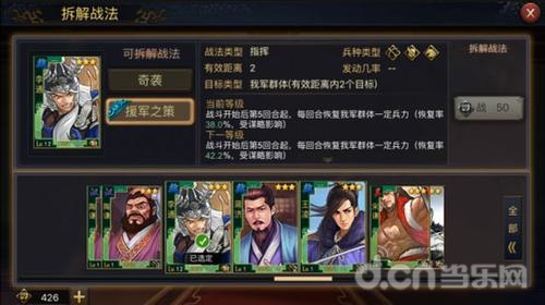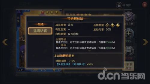 【拆解】在拆解战法中可以通过消耗3星及以上品质的武将,来获取特别的战法技能。点击武将牌战法槽下方的【可拆解战法】,也可以随时查看消耗该武将所能获得的战法。