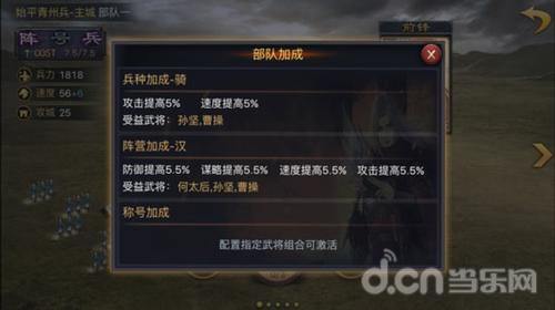 【部队加成】筹齐合适的武将来触发部队加成也是重要元素。可惜的是三种加成往往没法同时激活,为了达成称号武将组合,也许不得不在魏国队伍里塞进一个蜀将,灵活搭配武将并激活自己想要的加成,也是游戏中颇有挑战的一个细节。