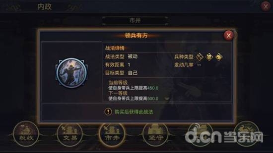 领兵有方,率土首个直接增加带兵量的技能,同样是两面,开荒可以带来凑数,尽快强攻高级地,后期也可以考虑大营佩戴增强生存能力,对兵力需求比较大的武将也可以考虑替代原有标配。