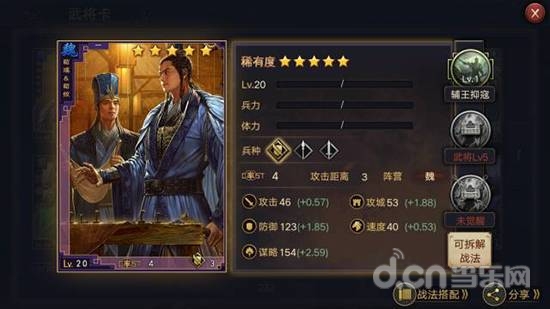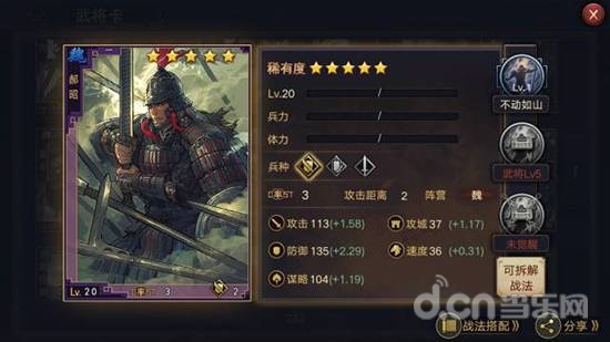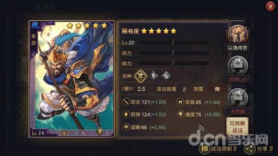 在一些老司机眼里,张郃就等于战必断金,这个武将在战场上的作用的确没他拆出的技能给力,所以这个武将适合用来拆技能,或者用作觉醒饲料。