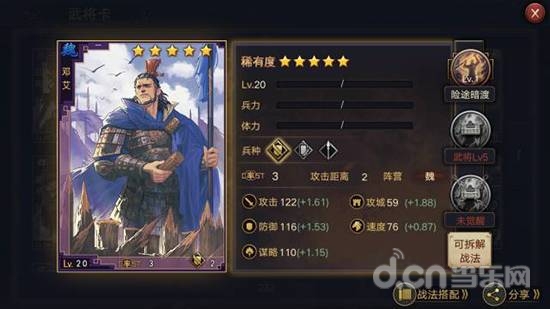 邓艾,我认为是比较尴尬的一个武将。自身技能不错,但是无奈于自身属性平淡无奇,用他来输出比较无力,做前锋属性平淡,中规中矩。拆出来的犄角之势使用性不广泛,能发挥这个技能特性的武将不多,但是发挥起来却十分的给力。如给吕蒙、赵云等。