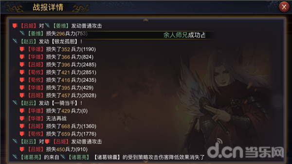 由以上战报也可以看出新赛季SP赵云的7连击战法威力还是很强大的,而且规避面对这个技能的时候也很尴尬,只能躲掉第一次攻击。