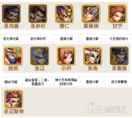 甲级每个碎片换45侠义值,每个将换45000侠义值。这里提一下,神袁绍还是神董卓是配缘分的,圣将抽不到,这里能进化的同名将可以先留一个。