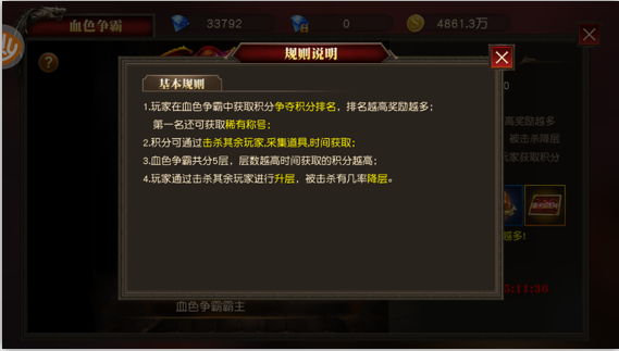 ⑤ 血色争霸最终根据积分进行排名,积分越高排名越高,所能获得的奖励越高。