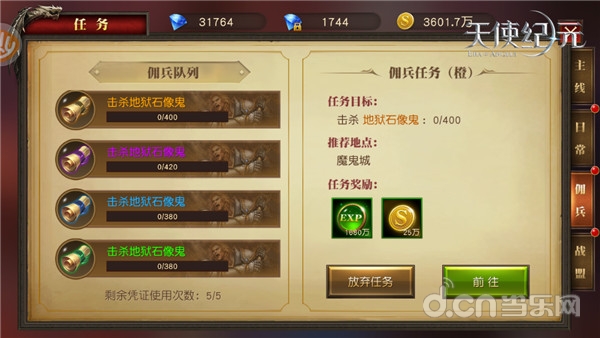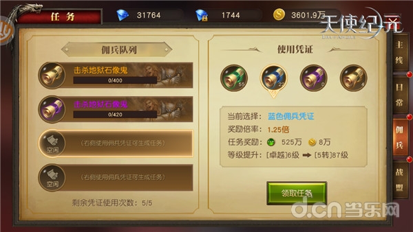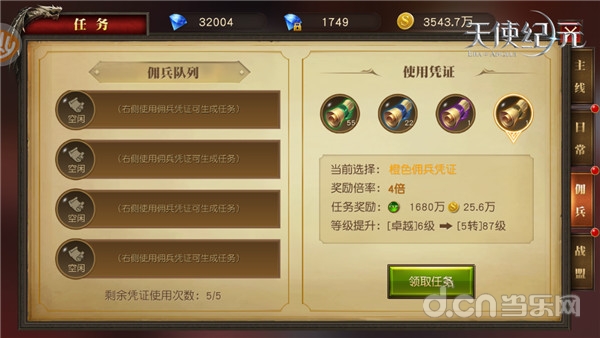 3、您每天最多可使用5次佣兵凭证来接取佣兵任务。