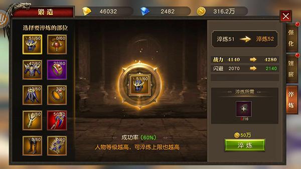3. 淬炼界面右侧是目前可淬炼的情况,包括属性提升幅度,所需消耗道具。