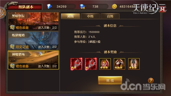 神魔猎场是《天使纪元》三大组队副本玩法之一。您将和其他玩家一起组队,共同在限定时间内击杀五个首领,完成副本并获取装备及道具奖励。