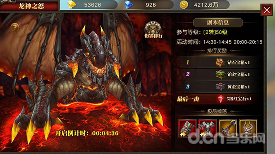 3. 活动结束后,根据对BOSS造成的伤害排名发放排名宝箱,开启宝箱后可获得大量金币,经验以及高级宝石;