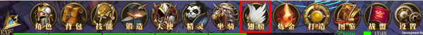 1、 打开翅膀面板可以看到当前装备的面板,点击左上角预览可以看到各代翅膀的外形及属性详情;