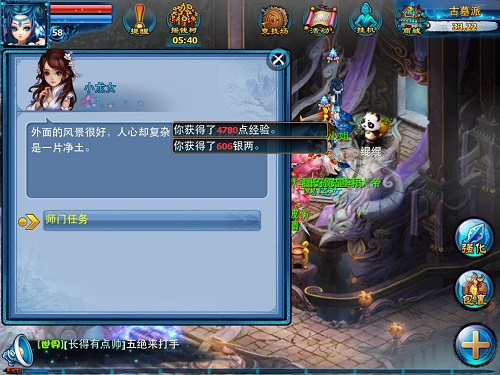 出门在外靠啥?必须是授业恩师啊。每位侠士的师父都是个有钱的主儿,所以没钱一定要找师父。当然师父的钱也不是白给的,需要做一些简单容易的任务才能领取。