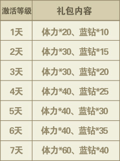 活动规则:只要玩家连续每日登陆游戏,即可活动登陆奖励,奖品可是每日递增的哦!