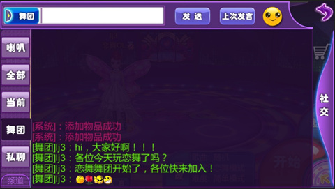 每个舞团都拥有自己的独立聊天窗口,该聊天窗口只限制舞团成员。在非舞团大厅外也有舞团聊天界面,了解玩伴的同时更能畅所欲言。