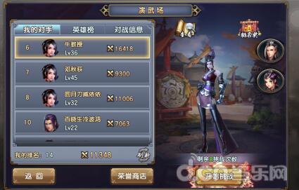 3.点击演武场中间的英雄榜,即可查看当前英雄榜排名情况(英雄榜只显示当前排名前10的玩家)