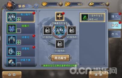 另外当玩家角色等级达到指定等级时,可镶嵌宝石的位置会被激活。玩家随着等级的提升,可以激活更多的宝石镶嵌槽。