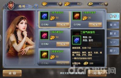 玩家们也可以选择从商城中购买强力的宝石,商城中的宝石需要花费绑定元宝购买,绑定元宝通过完成游戏中的任务可以直接获得。
