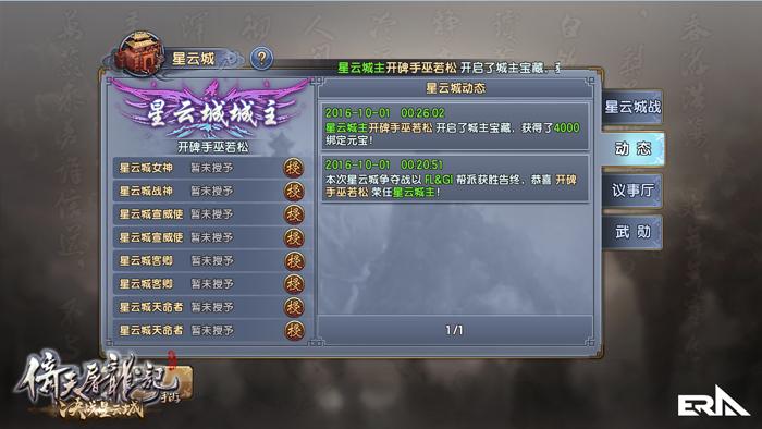 一朝成为城主,将拥有无上尊享权限,授予他人专属称号、设定城市商店税率、发放“城主之赏”、海量福利等等,另有珍宝无数的星云宝库,静待各位豪侠前来开启!