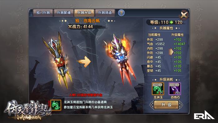 武林惊现独门兵器,助战《倚天屠龙记》手游四大职业:阿鼻地狱,六道轮回,唯我少林普度众生;三尺青锋,腾蛟跃渊,仗剑武当荡气回肠;茫茫沙漠,沧海云帆,圣耀明教日月同辉;峨眉金顶,青梅独守,玲珑峨眉纤巧心思。