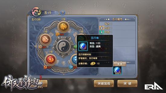 “五行”意味着万物之宗。大道其行,万物并存。所以当五行系统入驻游戏时,占据举足轻重的地位也是能够被理解的。在《倚天屠龙记》手游中,当玩家到达105级时,全新的五行系统将会开启。各位侠士可以通过寻找金、木、水、火、土五行灵珠,来强化自己角色的各种属性。而这些提升战力的灵珠子则是由红巾起义、师德商店、侠客寻访等方式获得,每提升10级,即可突破一次并获得大量属性,战斗力飙升的途径又多了一种!